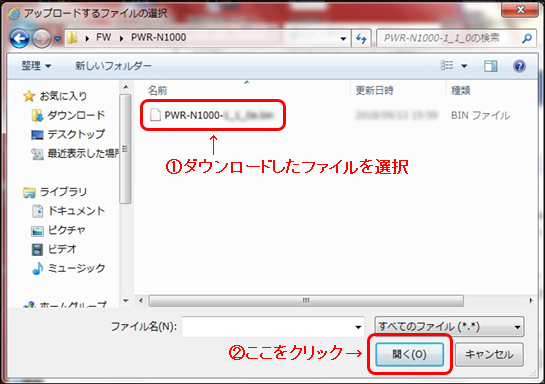 - ダウンロードしたファイルを指定します。