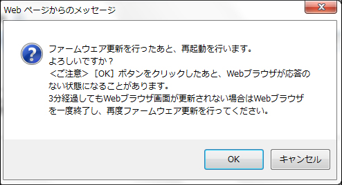 - ファームウェアのバージョンアップ中は、絶対に本商品の電源を切らないでください。
