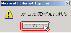 - ファームウェア更新完了の表示が出ますので[OK]をクリックしてください。