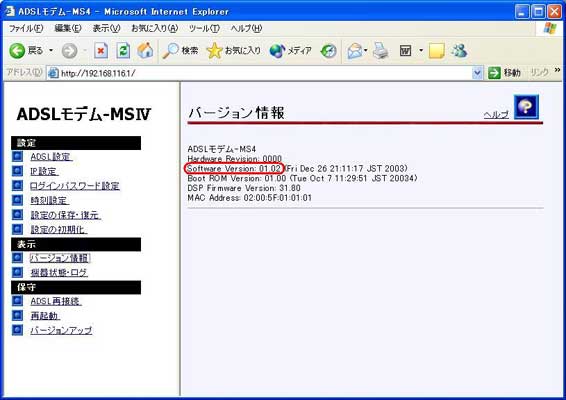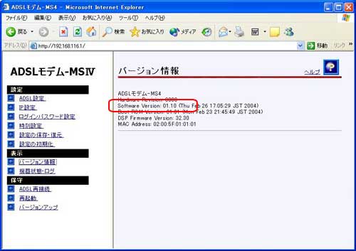 | ADSLモデム-MSIV Ver1.10 (2004/03/25) |