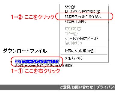 1. 「ファームウェア Ver1.10」上にマウスカーソルを重ね、右クリックする。