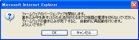 - バージョンアップ開始後、完了するまで絶対に装置本体の電源を落とさないでください。途中で電源を落としますと装置本体のファームウェアが破壊され、復旧不可能な状態となる場合がございます。