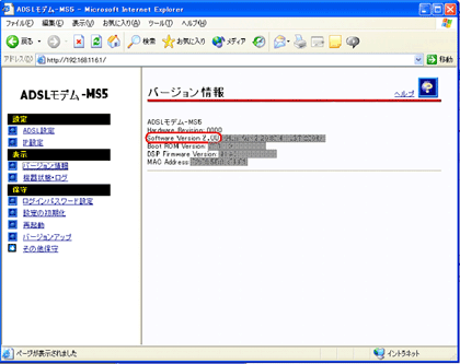 - 再起動が完了したら、設定画面のメニューフレーム「表示」の「バージョン情報」をクリックして、バージョンを確認してください。