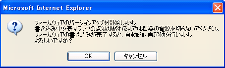 - バージョンアップ開始後、完了の表示が出るまで絶対に装置本体の電源を落とさないでください。途中で電源を落としますと装置本体のファームウェアが破壊され、復旧不可能な状態となる場合がございます。