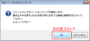 - バージョンアップ開始後、完了するまで絶対に装置本体の電源を落とさないでください。途中で電源を落としますと装置本体のファームウェアが破壊され、復旧不可能な状態となる場合がございます。