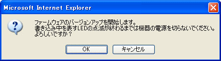 - バージョンアップ開始後、完了するまで絶対に装置本体の電源を落とさないでください。途中で電源を落としますと装置本体のファームウェアが破壊され、復旧不可能な状態となる場合がございます。