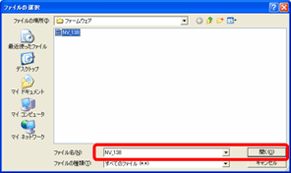 - 【ファイル指定】の「ファームウェアファイル」で[参照]をクリックます。
