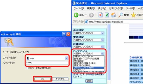 - PCが本装置のLANポートに直接接続されていることを確認し、WWWブラウザ(Internet Explorer)を起動し、アドレス入力欄に「http://ntt.setup/」を入力します。