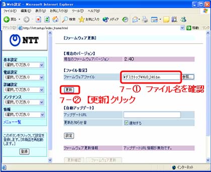 - バージョンアップ時に、ADSL回線の電話機コードを外す必要はありません。