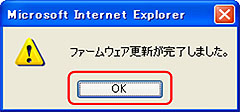- ファームウェア更新完了の表示が出ますので[OK]をクリックしてください。