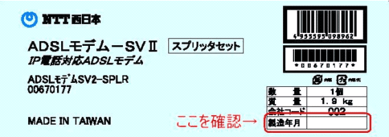 ※個装箱側面のシリアル番号ラベル左側の位置に緑色のシールが貼ってある商品、または”製造年月”が「S403」「S404」・・・の商品は、フレッツ・ADSLモア24以下のサービスに対応しておりますので、本ファームウェアによるバージョンアップの必要はありません。