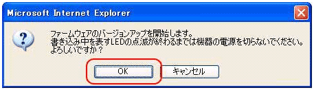 • バージョンアップ開始後、完了の表示が出るまで絶対に装置本体の電源を落とさないでください。途中で電源を落としますと装置本体のファームウェアが破壊され、復旧不可能な状態となる場合がございます。