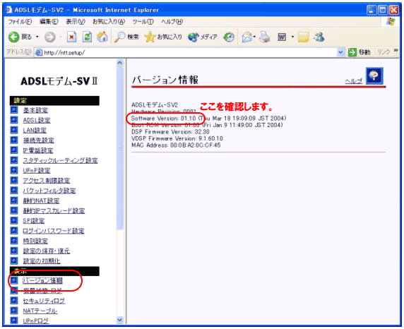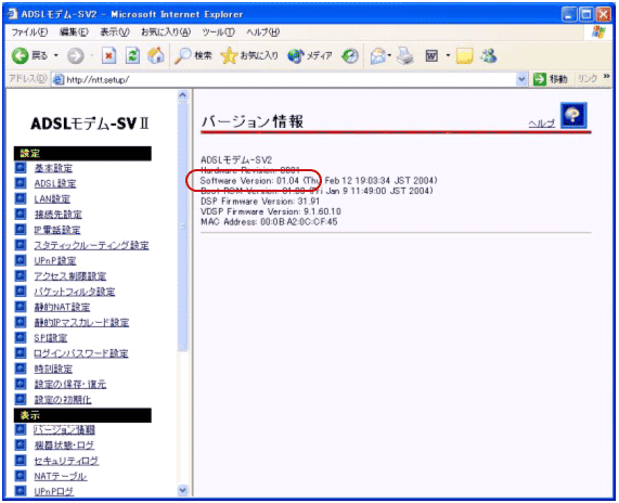 ADSLモデム-SVII Ver1.10 (2004/03/31)