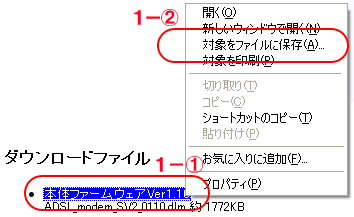 1. 「ファームウェア Ver1.10」上にマウスカーソルを重ね、右クリックする。
