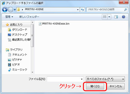 ダウンロードしたファイルを選択し、[開く]をクリックします。 |