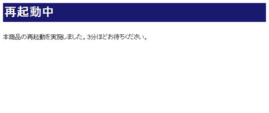 8. ファームアップ中は以下の画面が表示されます。ファームウェア更新完了するまで電源を抜かずにお待ちください。アラームランプ消灯後、「再表示」をクリックします。