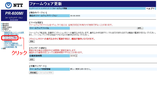 「メンテナンス」から「ファームウェア更新」を選択します。