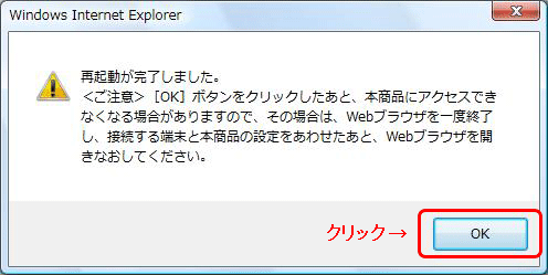 以下のダイアログが表示されますので、「OK」をクリックします。 |