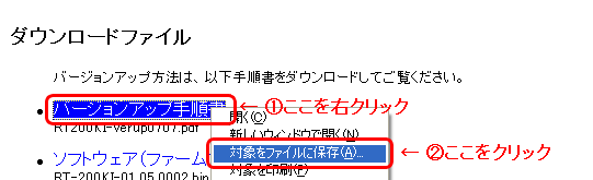 以下の「バージョンアップ手順書」をダウンロードしてご覧ください。 バージョンアップ手順書を右クリックして、「保存」 を選択し、ご利用のPCにダウンロードしてください。