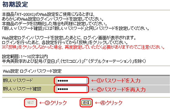 (注意)Web設定ログインパスワードは忘れないように必ずメモして安全な場所に保管してください。
