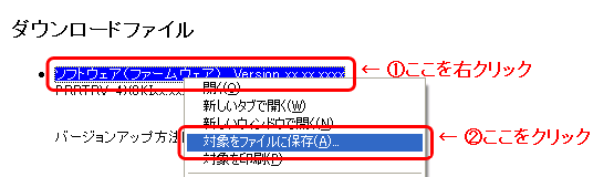 1. 以下のファームウェアを右クリックして、「保存」を選択し、ご利用のPCにダウンロードします。