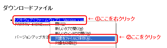 以下のファームウェアを右クリックして、「保存」を選択し、ご利用のPCにダウンロードします。