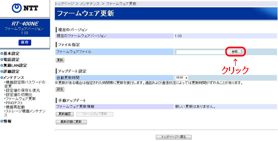 「メンテナンス」から「ファームウェア更新」を選択します。 |