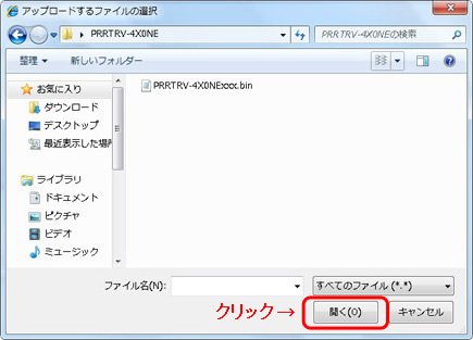ダウンロードしたファイルを選択し、[開く]をクリックします。 |