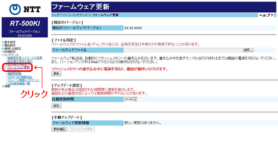 「メンテナンス」から「ファームウェア更新」を選択します。 |