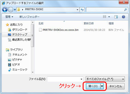 ダウンロードしたファイルを選択し、[開く]をクリックします。 |