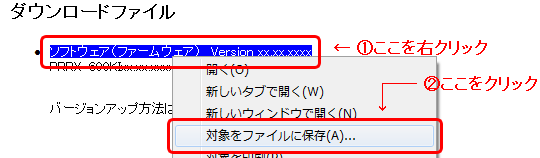 以下のファームウェアを右クリックして、「保存」を選択し、ご利用のPCにダウンロードします。