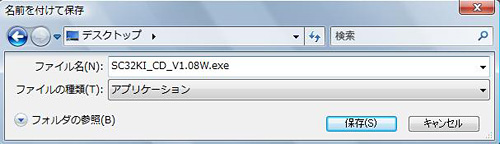 - 「名前を付けて保存」の画面が表示されますので、「SC32KI_CD_V1.08W.exe」を保存する場所を指定し、[保存]ボタンをクリックします。
