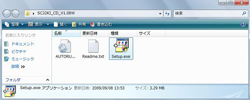 - 「SC32KI_CD_V1.08W」フォルダをダブルクリックし、「Setup.exe」をダブルクリックします。