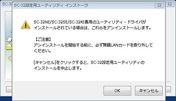 - SC-32KI専用ユーティリティ、ドライバがインストールされている場合は、必ずアンインストールしてから再度インストールして下さい。この場合以前設定された内容は保存されませんので、必要に応じて再度設定してください。