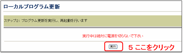 - プログラム更新画面が表示されるので、「実行」をクリックします。