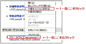 - 以下のファームウェアを右クリックして、「保存」を選択し、ご利用のPC にダウンロードします。