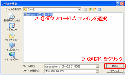 - ダウンロードしたファイルを指定します。