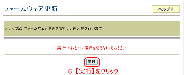 - プログラム更新画面が表示されるので、「実行」をクリックします。
