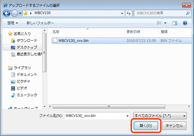 ダウンロードしたファイルを選択し、「開く」をクリックします。 |