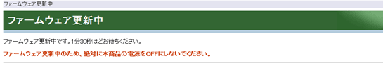 ファームアップ中は以下の画面が表示されます。ファームウェア更新完了するまで電源を抜かずにお待ちください。 |