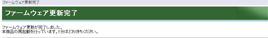 更新が完了すると以下の画面が表示されます。ダイアログが表示されるまで、そのまま1分ほどお待ちください。 |