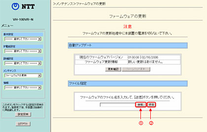 • バージョンアップを行うと通信が切断します。 バージョンアップを行う前に、すべての通信を終了させてください。