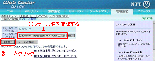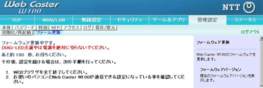 - ファームウェアのアップデート中は絶対に本商品の電源を落とさないでください。本商品が起動できなくなり、使用できなくなる場合があります。