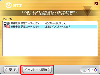 - 下記の画面が現れるので、「無線子機設定ユーティリティ」にチェックを入れて、「インストール開始」をクリックします。
