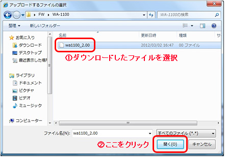 - ダウンロードしたファイルを指定します。