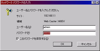 ※ユーザ名は”admin”、パスワードは初期設定時にお客様が設定した値になります。