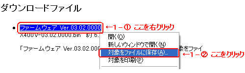 1. 以下のファームウェアを右クリックして、「保存」を選択し、ご利用のPCにダウンロードします。