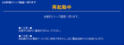 途中で電源を落としますと装置本体のファームウェアが破壊され、復旧不可能な状態となる場合がございます。