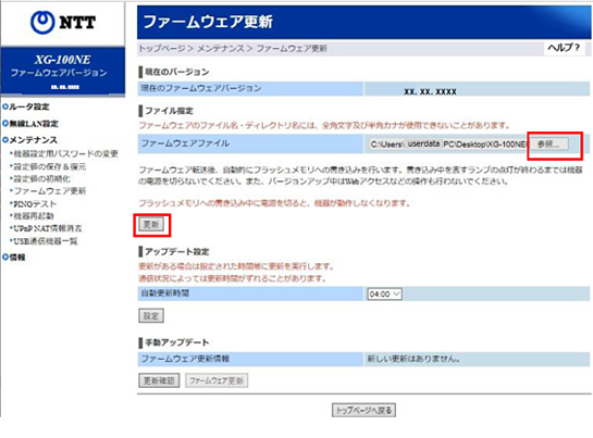 | HOME > サポート情報 > ダウンロード > フレッツシリーズ対応情報機器 > ホームゲートウェイ(XG-100NE) |
