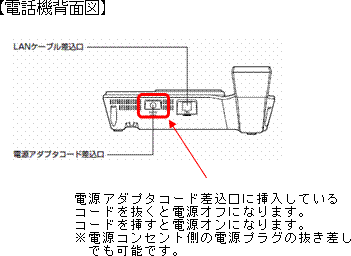 (1) 通話中でないことを確認し、電話機の電源アダプタコードを抜きます。